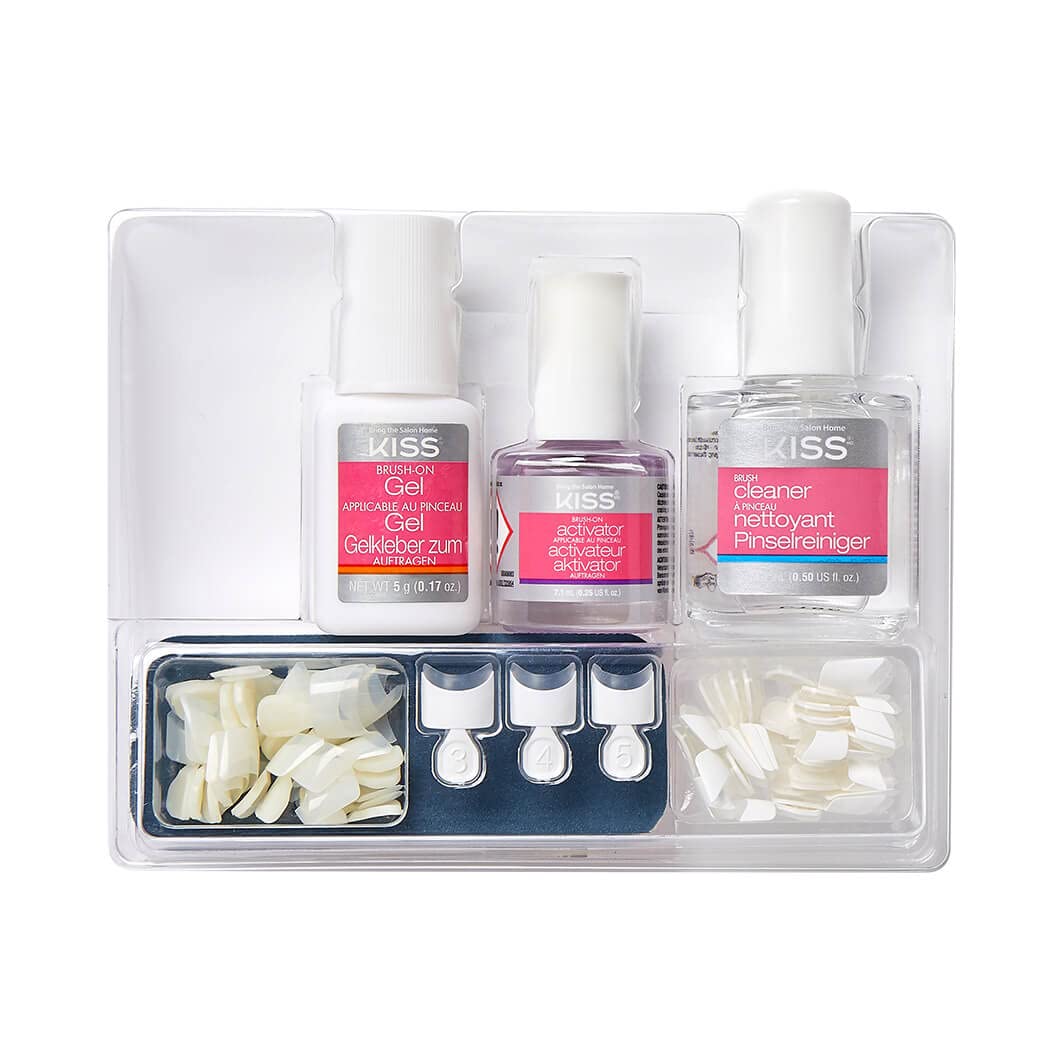 Treat your nails with the KISS Brush On Gel Kit. This is a pack of 51 items, including gel nails, short-length tips, an activator and a gel and brush cleaner. You can use them to complete two full manicures. The KISS Brush-On Gel Kit includes self-tab tips that can be bent off for the desired length. No buffing is required, and you can use the kit without a lamp. The KISS gel kit is designed to give you clean, durable nails. It allows you to do your nails without going to a salon. Whether you are a beginner or you are a nail professional, this brush-on gel nail kit is a useful way to produce quality nails.