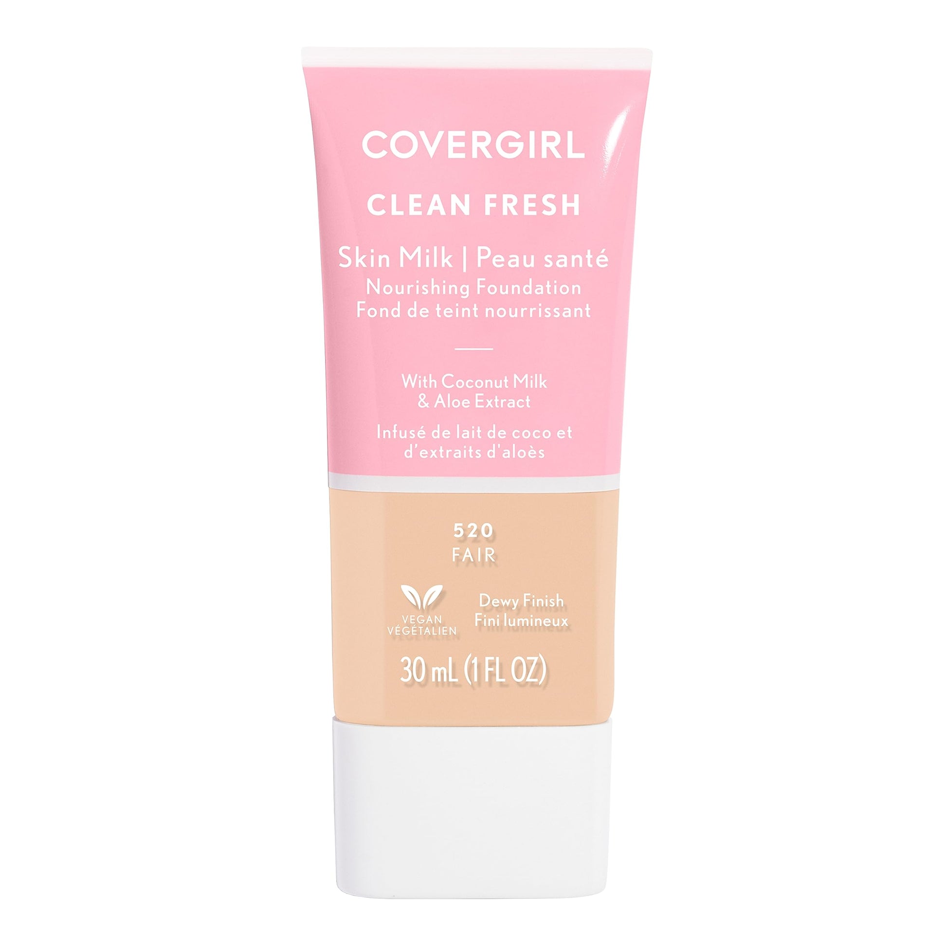 Show off fresh, healthy skin with COVERGIRL Clean Fresh Skin Milk Foundation. This lightweight nourishing liquid foundation gives your skin the moisture boost it craves, with a delicate infusion of milky coconut and soothing Aloe. You'll experience a glowing, dewy finish that lasts all day long, blurring imperfections and creating a more even skin tone.