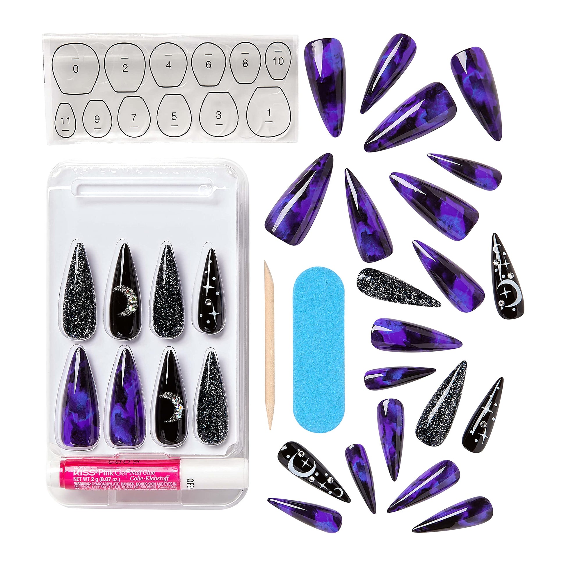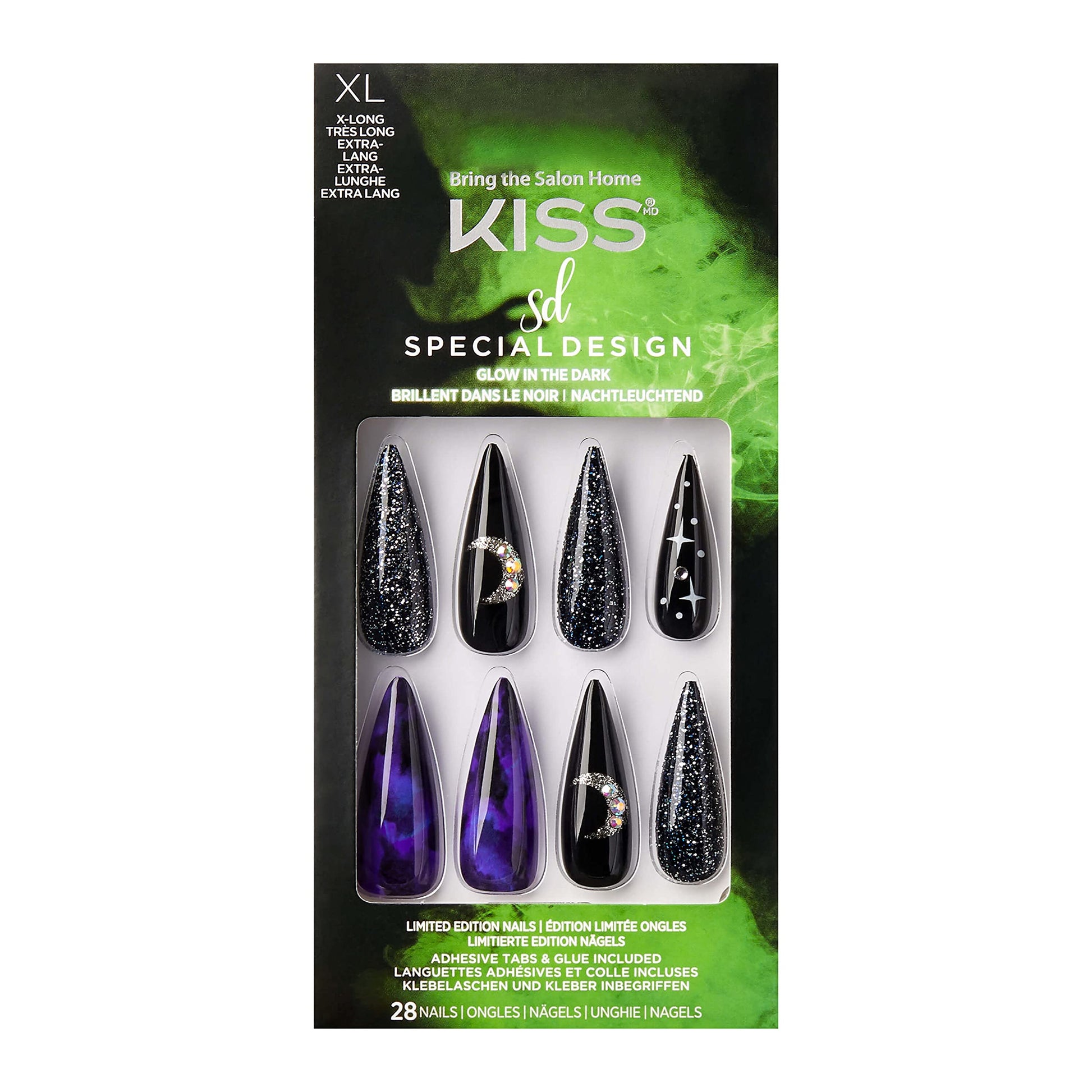 Solid nail polish colors, glossy, matte, 3D, and glow-in-the-dark finishes, all with the spookiest themed designs ever; Easy to glue on or press on; Nails will look bewitching literally in minutes & stay put for up to a week.