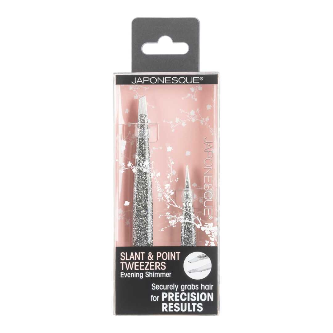 The Japonesque slant & point tweezers in our evening shimmer finish are expertly designed to shape & define your brows to perfection. Precision-crafted, hand-sharpened tips with superior alignment precisely remove unwanted hair for flawless results. Slant tip securely grabs each hair at the root to shape & define your brows while the mini point tip is ideal for extracting fine or hard-to-grab hairs for precision results.